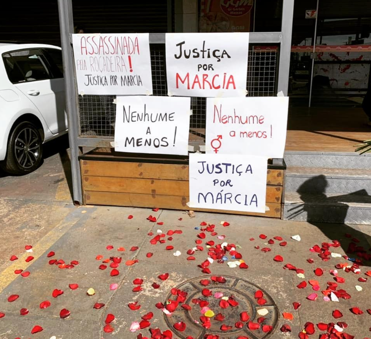 Com cartazes, faixas, pétalas de rosa e a leitura de uma carta-manifesto, levamos a voz de Márcia à frente do Fórum da Comarca. Expomos nossa luta por um sistema de justiça que respeite a memória das vítimas e não seja condescendente com valores machistas que continuam a ceifar vidas femininas.
